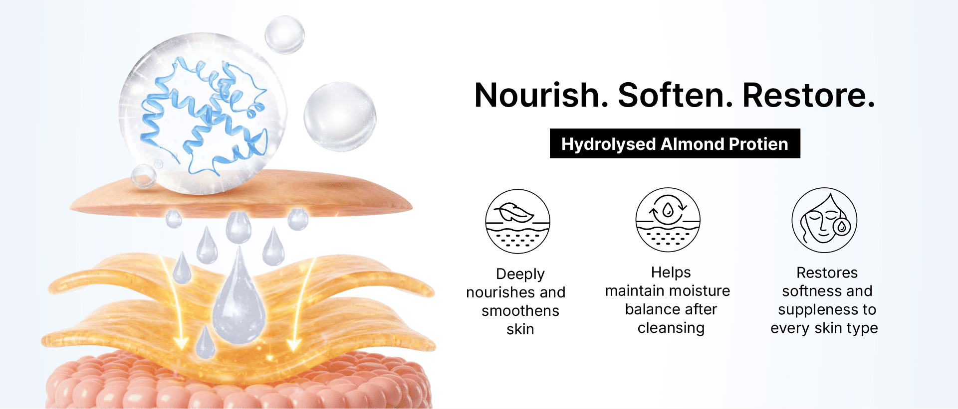 Hydrolysed Almond Protein delivers deep hydration, nourishing your skin and improving elasticity. It ensures a smooth, supple feel that enhances your glow.